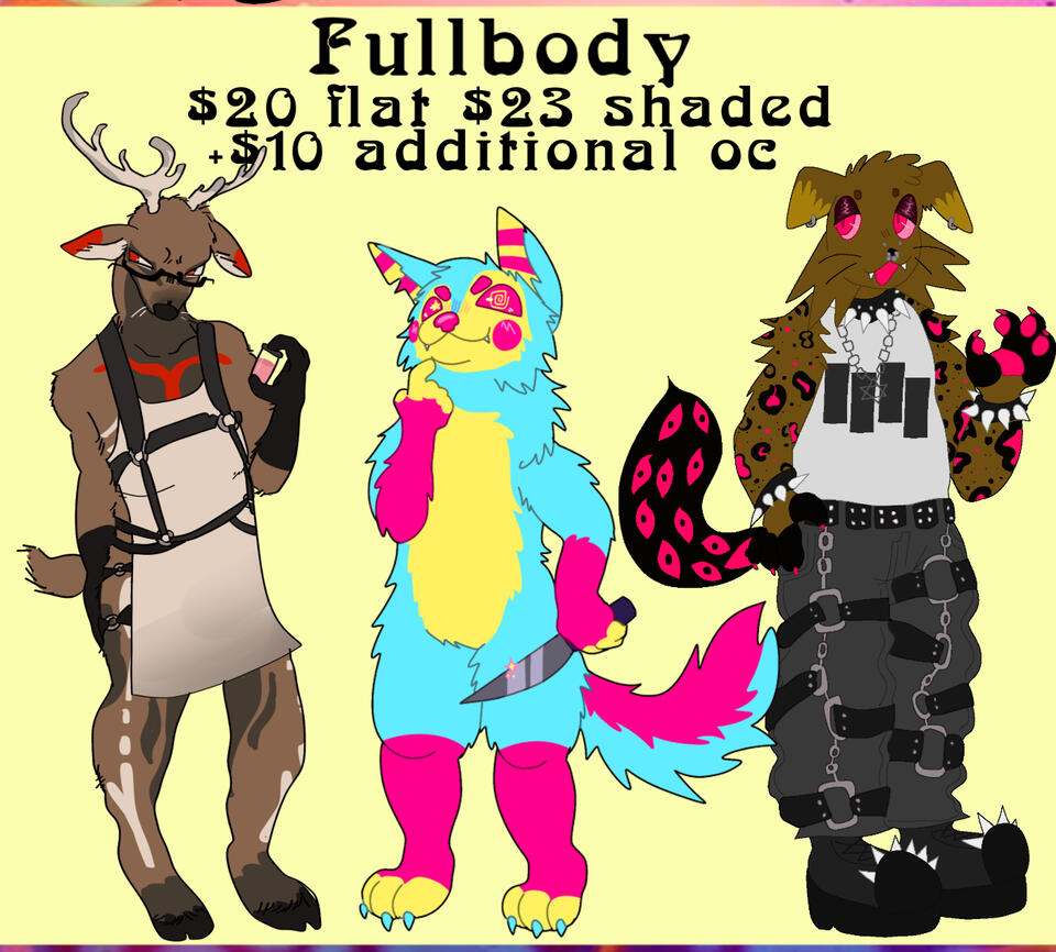 1.i will gladly draw anthro and feral characters. humanoid i do need more practice with and would prefer to just do anthro and feral. i cannot do super articulate robotic/mecha designs either 2.my style is cartoonish, i won’t be able to do anything highly realistic. i do try to give anthros more humanoid proportions.